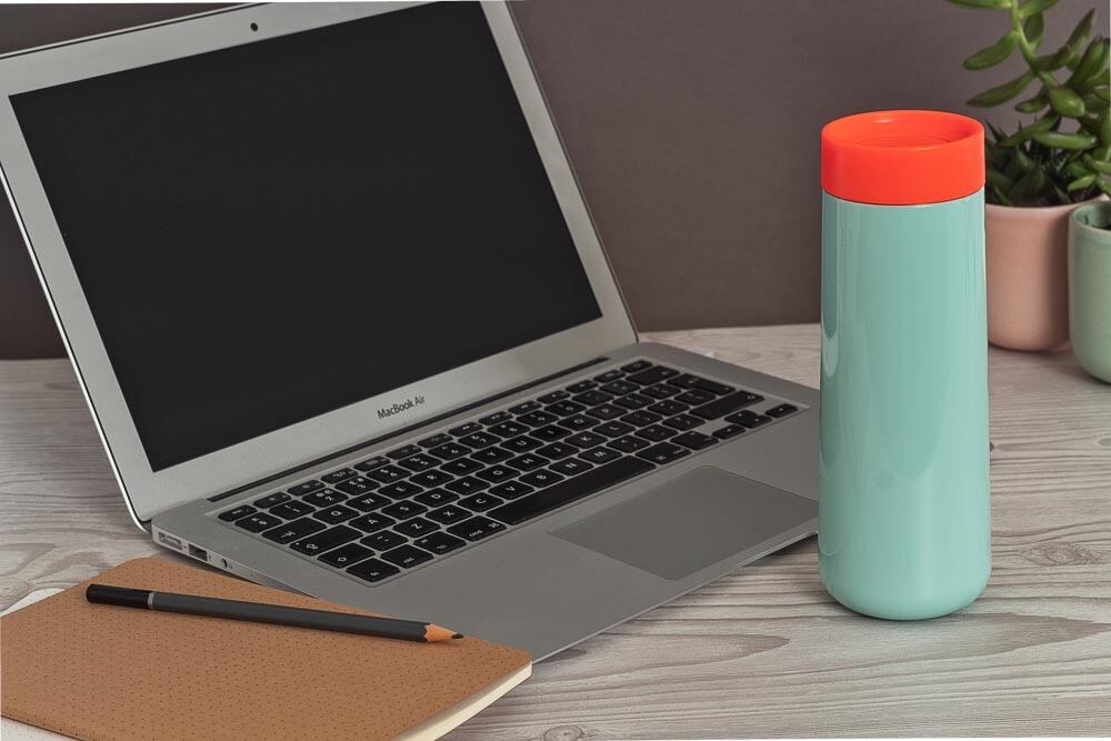 再利用可能なトラベルマグです。断熱構造で飲み物を温かく保ち、プッシュボタンで簡単に開くことができ、360°どこからでも飲むことが可能です。デザインは、スリムでシルエット。持ち運びも便利なので、外出先でも簡単に使用できます。
